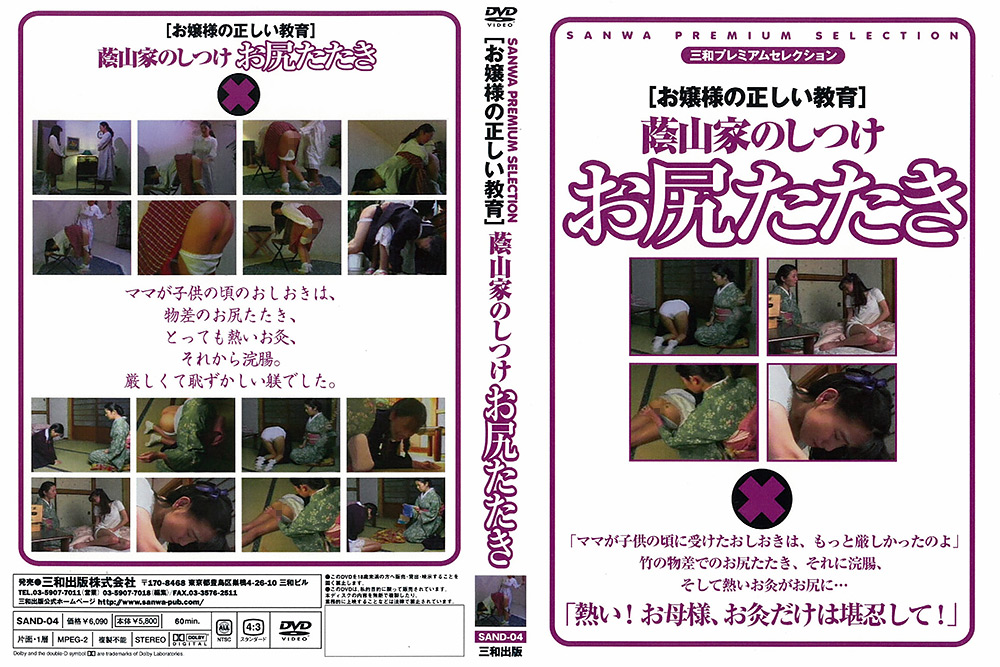 商品紹介文: 「ママが○○の頃に受けたおしおきは、もっと厳しかったのよ。」竹の物差でのお尻たたき、それに浣腸、そして熱いお灸がお尻に…。「熱い!!お母様、お灸だけは堪忍して!!」厳しくて恥ずかしい躾でした。